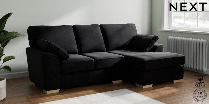 7.2.10 Buy Stamford Small Sofa Chaise - Right Hand Fine Chenille Easy Clean Black Large Square Angle - Light from the Next UK online shop Click here to use our accessible website