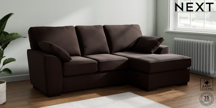 7.2.10 Buy Stamford Small Sofa Chaise - Right Hand Fine Chenille Easy Clean Chocolate Brown Large Square Angle - Dark from the Next UK online shop Click here to use our accessible website