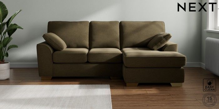 7.3.1 Buy Stamford Small Sofa Chaise - Right Hand Fine Chenille Easy Clean Dark Moss Green Large Square Angle - Brushed Brass from the Next UK online shop Click here to use our accessible website
