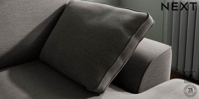 7.2.10 Buy Stamford Small Sofa Chaise - Right Hand Fine Chenille Easy Clean Dark Smoke Grey Large Square Angle - Mid from the Next UK online shop Click here to use our accessible website
