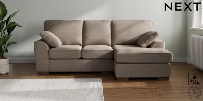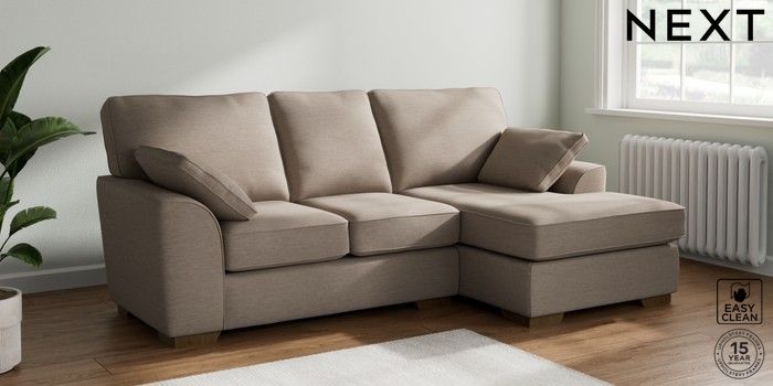 7.3.1 Buy Stamford Small Sofa Chaise - Right Hand Fine Chenille Easy Clean Mid Taupe Brown Large Square Angle - Mid from the Next UK online shop Click here to use our accessible website