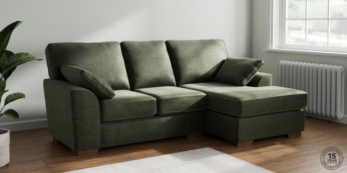 6.12.1 Buy Stamford Small Sofa Chaise - Right Hand Luxe Chenille Mid Green Large Square Angle - Mid from the Next UK online shop Click here to use our accessible website