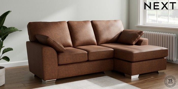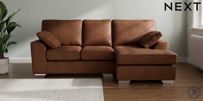 7.3.1 Buy Stamford Small Sofa Chaise - Right Hand Monza Faux Leather Easy Clean Chestnut Brown Large Square Angle - Chrome Metal from the Next UK online shop Click here to use our accessible website