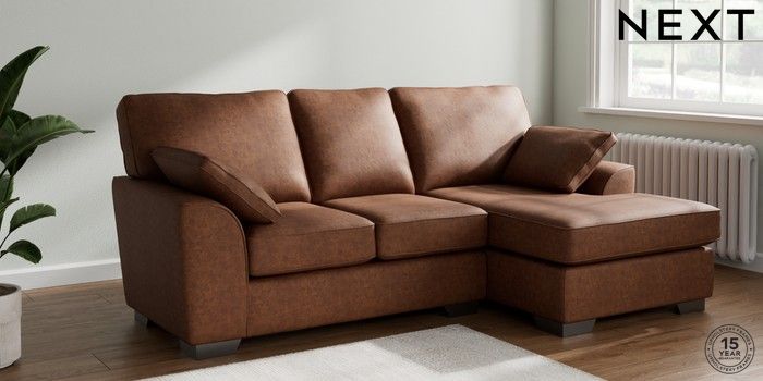 7.3.1 Buy Stamford Small Sofa Chaise - Right Hand Monza Faux Leather Easy Clean Chestnut Brown Large Square Angle - Gunmetal from the Next UK online shop Click here to use our accessible website