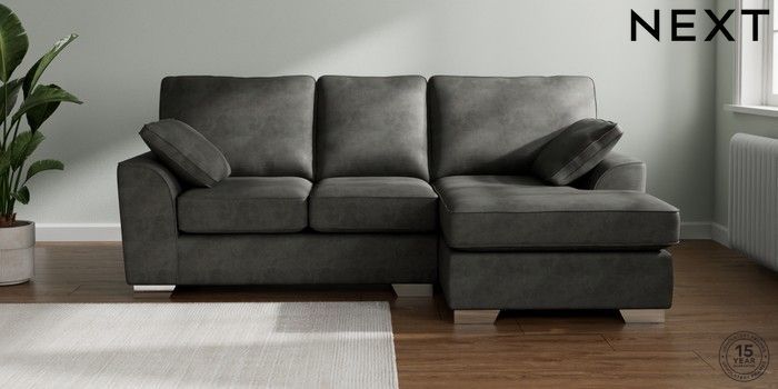 7.3.1 Buy Stamford Small Sofa Chaise - Right Hand Monza Faux Leather Easy Clean Dark Grey Large Square Angle - Chrome Metal from the Next UK online shop Click here to use our accessible website