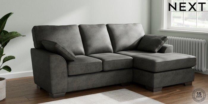 7.3.1 Buy Stamford Small Sofa Chaise - Right Hand Monza Faux Leather Easy Clean Dark Grey Large Square Angle - Gunmetal from the Next UK online shop Click here to use our accessible website