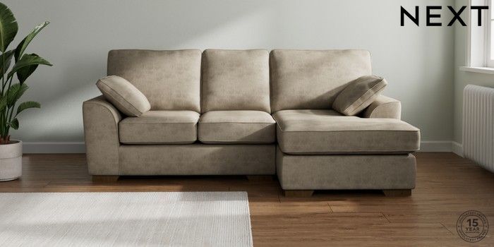 7.3.1 Buy Stamford Small Sofa Chaise - Right Hand Monza Faux Leather Easy Clean Mink Brown Large Square Angle - Mid from the Next UK online shop Click here to use our accessible website