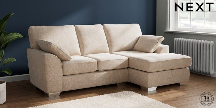 7.2.6 Buy Stamford Small Sofa Chaise - Right Hand Multi Weave Mid Natural Large Square Angle - Chrome Metal from the Next UK online shop Click here to use our accessible website