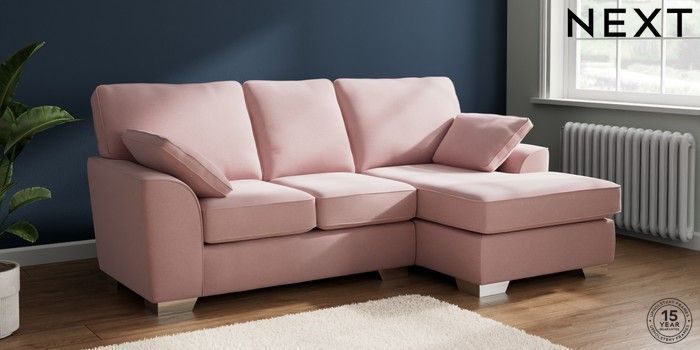 7.3.1 Buy Stamford Small Sofa Chaise - Right Hand Natural Mix Light Rose Pink Large Square Angle - Chrome Metal from the Next UK online shop Click here to use our accessible website