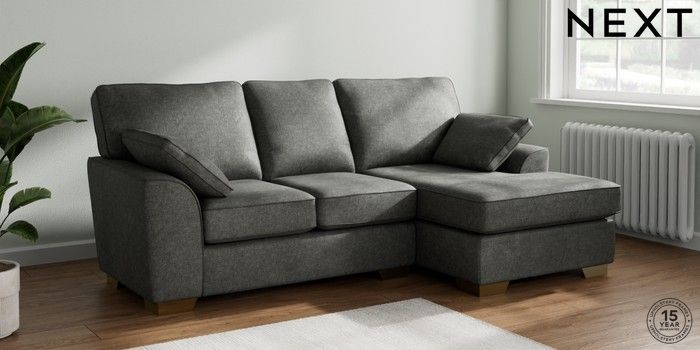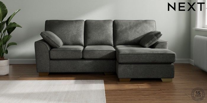 7.2.10 Buy Stamford Small Sofa Chaise - Right Hand Plush Chenille Dark Grey Large Square Angle - Brushed Brass from the Next UK online shop Click here to use our accessible website