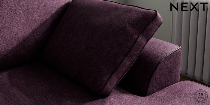 7.3.1 Buy Stamford Small Sofa Chaise - Right Hand Plush Chenille Dark Plum Purple Large Square Angle - Brushed Brass from the Next UK online shop Click here to use our accessible website