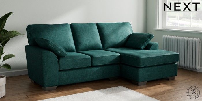 7.3.1 Buy Stamford Small Sofa Chaise - Right Hand Plush Chenille Dark Teal Green Large Square Angle - Gunmetal from the Next UK online shop Click here to use our accessible website