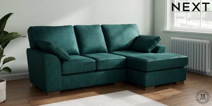 7.2.10 Buy Stamford Small Sofa Chaise - Right Hand Plush Chenille Dark Teal Green Large Square Angle - Mid from the Next UK online shop Click here to use our accessible website
