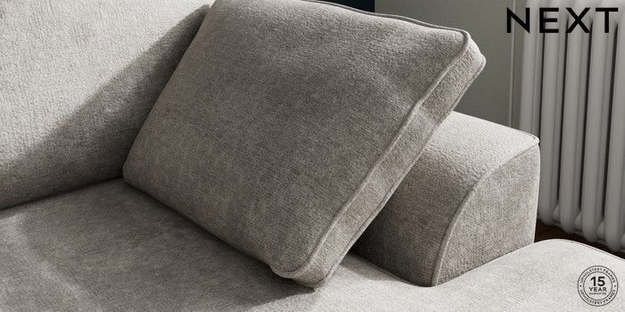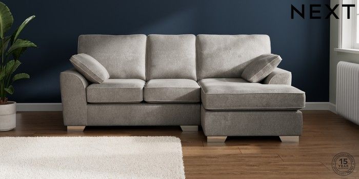 7.2.10 Buy Stamford Small Sofa Chaise - Right Hand Plush Chenille Light Grey Large Square Angle - Chrome Metal from the Next UK online shop Click here to use our accessible website