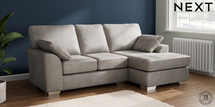 6.12.1 Buy Stamford Small Sofa Chaise - Right Hand Plush Chenille Light Grey Large Square Angle - Chrome Metal from the Next UK online shop Click here to use our accessible website