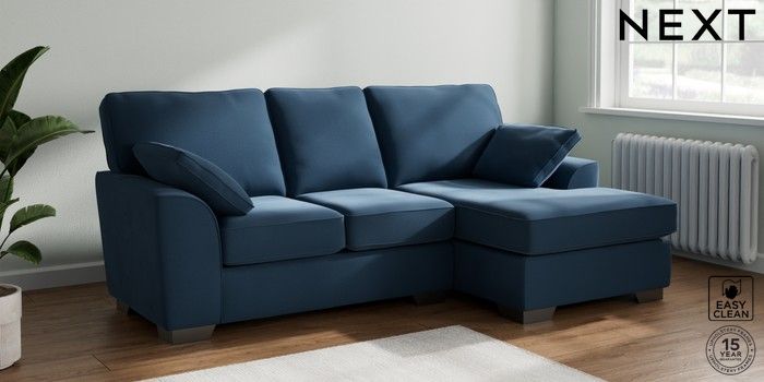 7.3.1 Buy Stamford Small Sofa Chaise - Right Hand Plush Velvet Easy Clean Airforce Blue Large Square Angle - Gunmetal from the Next UK online shop Click here to use our accessible website