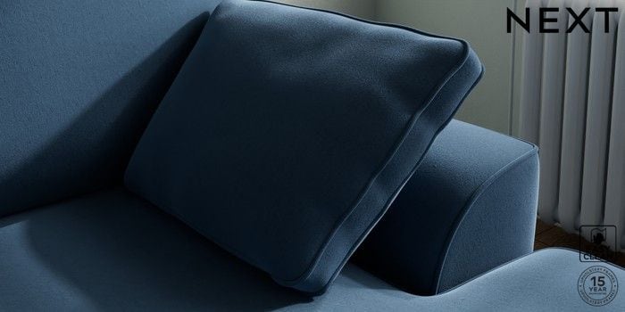 7.2.10 Buy Stamford Small Sofa Chaise - Right Hand Plush Velvet Easy Clean Airforce Blue Large Square Angle - Mid from the Next UK online shop Click here to use our accessible website
