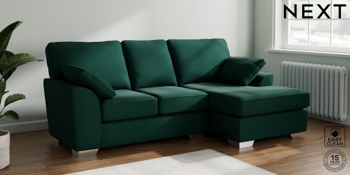 7.3.1 Buy Stamford Small Sofa Chaise - Right Hand Plush Velvet Easy Clean Bottle Green Large Square Angle - Chrome Metal from the Next UK online shop Click here to use our accessible website