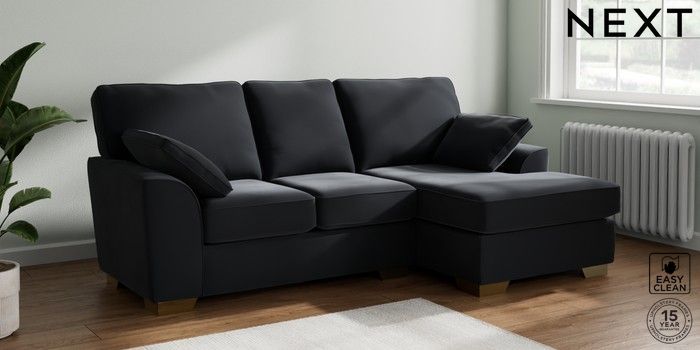 7.2.10 Buy Stamford Small Sofa Chaise - Right Hand Plush Velvet Easy Clean Charcoal Grey Large Square Angle - Brushed Brass from the Next UK online shop Click here to use our accessible website