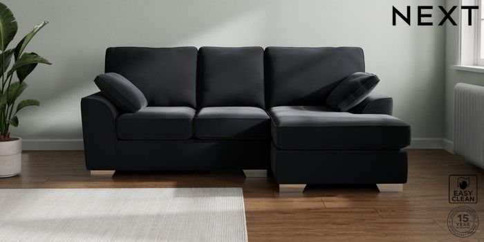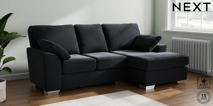 7.2.10 Buy Stamford Small Sofa Chaise - Right Hand Plush Velvet Easy Clean Charcoal Grey Large Square Angle - Chrome Metal from the Next UK online shop Click here to use our accessible website