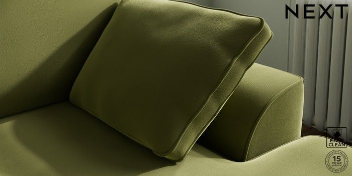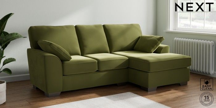 7.3.1 Buy Stamford Small Sofa Chaise - Right Hand Plush Velvet Easy Clean Mid Olive Green Large Square Angle - Gunmetal from the Next UK online shop Click here to use our accessible website