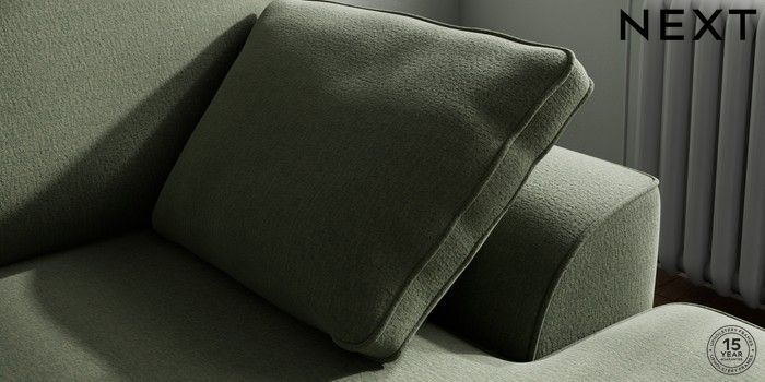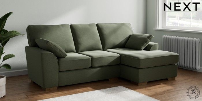 7.3.1 Buy Stamford Small Sofa Chaise - Right Hand Relaxed Linen Look Dark Green Large Square Angle - Mid from the Next UK online shop Click here to use our accessible website