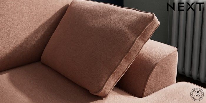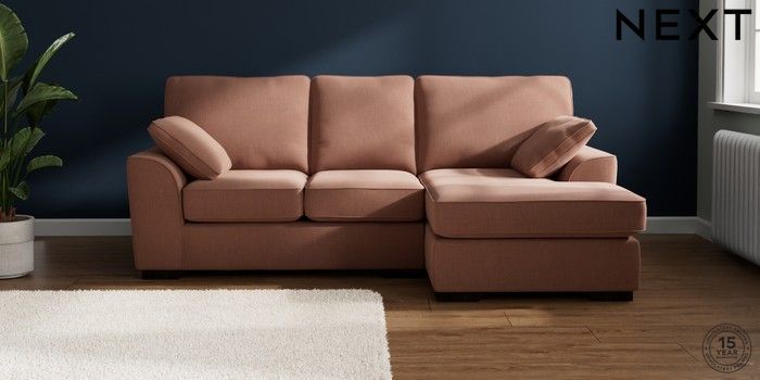 7.2.10 Buy Stamford Small Sofa Chaise - Right Hand Relaxed Linen Look Light Rust Brown Large Square Angle - Dark from the Next UK online shop Click here to use our accessible website