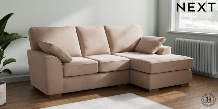 7.2.10 Buy Stamford Small Sofa Chaise - Right Hand Relaxed Linen Look Mid Natural Large Square Angle - Mid from the Next UK online shop Click here to use our accessible website