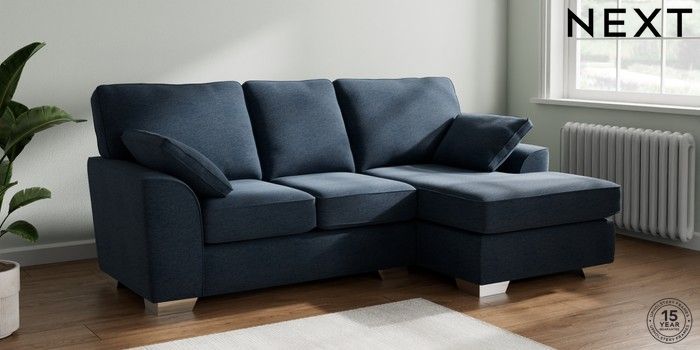 7.2.6 Buy Stamford Small Sofa Chaise - Right Hand Ripple Chenille Dark Blue Large Square Angle - Chrome Metal from the Next UK online shop Click here to use our accessible website
