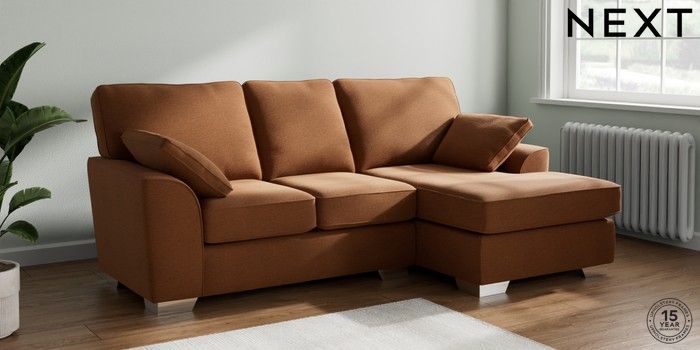 7.2.10 Buy Stamford Small Sofa Chaise - Right Hand Ripple Chenille Mid Rust Brown Large Square Angle - Chrome Metal from the Next UK online shop Click here to use our accessible website