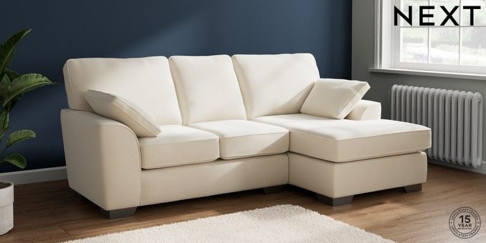 7.2.10 Buy Stamford Small Sofa Chaise - Right Hand Ripple Chenille Oyster Large Square Angle - Gunmetal from the Next UK online shop Click here to use our accessible website