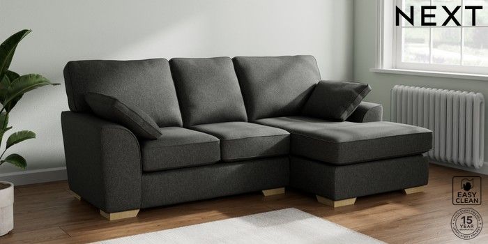 7.2.6 Buy Stamford Small Sofa Chaise - Right Hand Tweedy Blend Easy Clean Charcoal Grey Large Square Angle - Light from the Next UK online shop Click here to use our accessible website