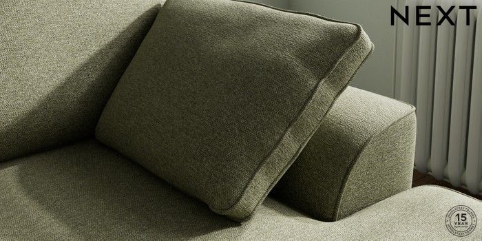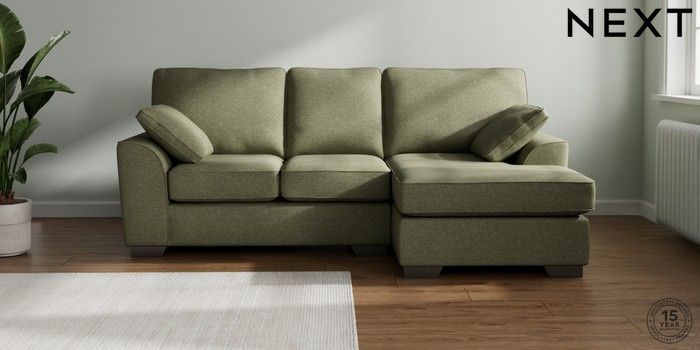 7.3.1 Buy Stamford Small Sofa Chaise - Right Hand Tweedy Chenille Mid Moss Green Large Square Angle - Gunmetal from the Next UK online shop Click here to use our accessible website