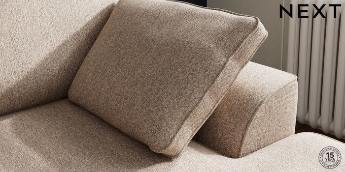 7.3.1 Buy Stamford Small Sofa Chaise - Right Hand Tweedy Chenille Mid Natural Large Square Angle - Brushed Brass from the Next UK online shop Click here to use our accessible website