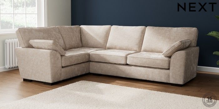 7.2.10 Buy Stamford Large Corner Sofa - Left Hand Distressed Velour Mid Natural Large Square Angle - Dark from the Next UK online shop Click here to use our accessible website
