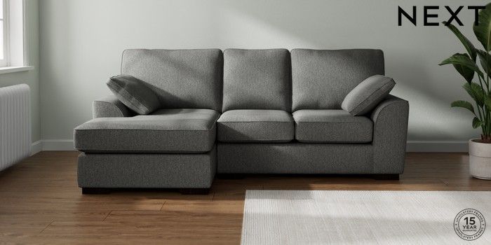 7.2.6 Buy Stamford Small Sofa Chaise - Left Hand Tweedy Chenille Dark Grey Large Square Angle - Dark from the Next UK online shop Click here to use our accessible website
