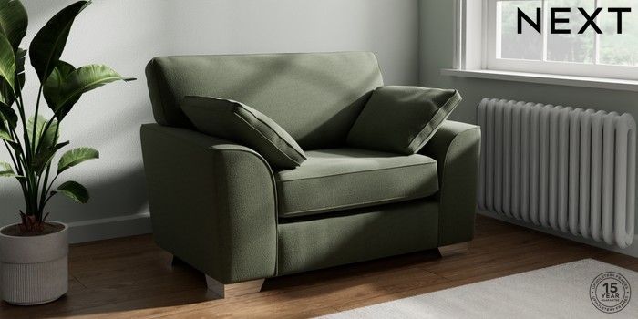 7.3.1 Buy Stamford Snuggle Relaxed Linen Look Dark Green Large Square Angle - Chrome Metal from the Next UK online shop Click here to use our accessible website