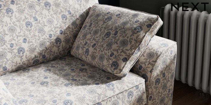 7.3.1 Buy Stamford Snuggle Relaxed Linen Look Print Woodblock Floral Blue Large Square Angle - Brushed Brass from the Next UK online shop Click here to use our accessible website