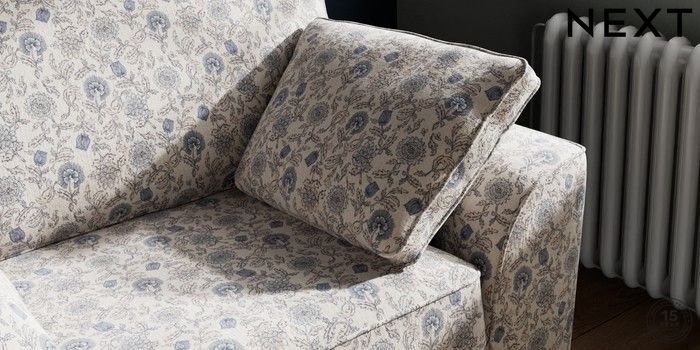 7.3.1 Buy Stamford Snuggle Relaxed Linen Look Print Woodblock Floral Blue Large Square Angle - Mid from the Next UK online shop Click here to use our accessible website