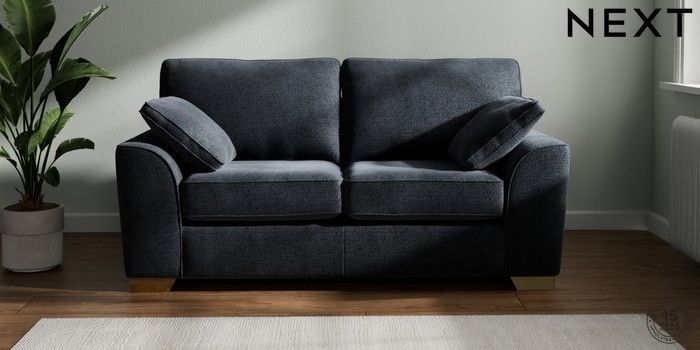 7.2.10 Buy Stamford Sofa Bed Boucle Chenille Dark Slate Blue Large Square Angle - Brushed Brass from the Next UK online shop Click here to use our accessible website