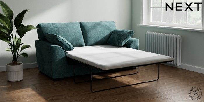 7.2.10 Buy Stamford Sofa Bed Chunky Chenille Mid Teal Green Large Square Angle - Dark from the Next UK online shop Click here to use our accessible website