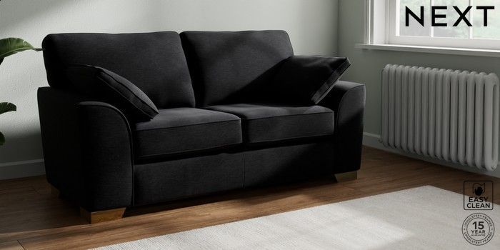 7.2.10 Buy Stamford Sofa Bed Fine Chenille Easy Clean Black Large Square Angle - Brushed Brass from the Next UK online shop Click here to use our accessible website