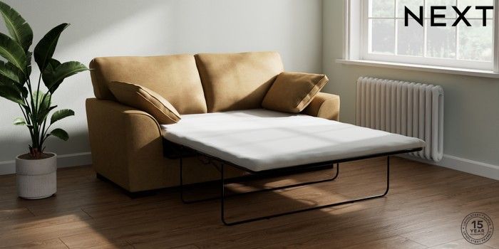 7.2.6 Buy Stamford Sofa Bed Luxe Chenille Honey Yellow Large Square Angle - Dark from the Next UK online shop Click here to use our accessible website
