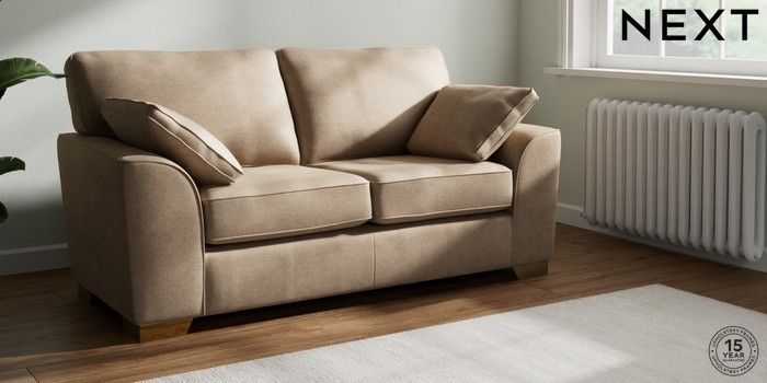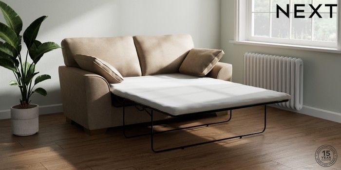 7.2.10 Buy Stamford Sofa Bed Luxe Chenille Mid Camel Beige Large Square Angle - Brushed Brass from the Next UK online shop Click here to use our accessible website