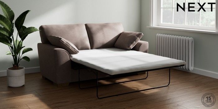 7.2.10 Buy Stamford Sofa Bed Luxe Chenille Mink Brown Large Square Angle - Mid from the Next UK online shop Click here to use our accessible website