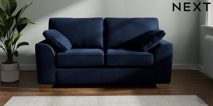 7.2.10 Buy Stamford Sofa Bed Luxe Chenille Navy Blue Large Square Angle - Brushed Brass from the Next UK online shop Click here to use our accessible website