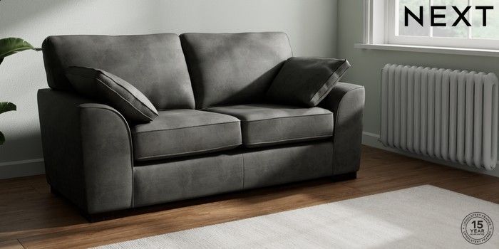 7.2.10 Buy Stamford Sofa Bed Monza Faux Leather Easy Clean Dark Grey Large Square Angle - Dark from the Next UK online shop Click here to use our accessible website