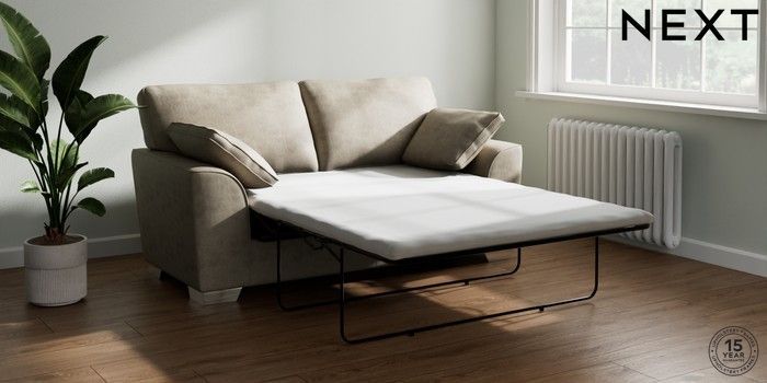 7.3.1 Buy Stamford Sofa Bed Monza Faux Leather Easy Clean Mink Brown Large Square Angle - Chrome Metal from the Next UK online shop Click here to use our accessible website