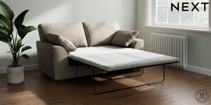 7.3.1 Buy Stamford Sofa Bed Monza Faux Leather Easy Clean Mink Brown Large Square Angle - Gunmetal from the Next UK online shop Click here to use our accessible website