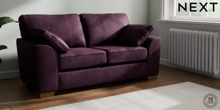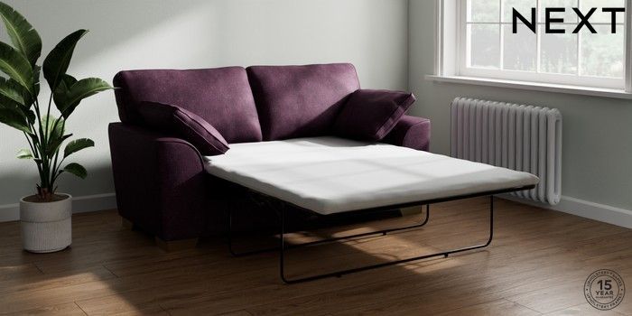 7.2.10 Buy Stamford Sofa Bed Plush Chenille Dark Plum Purple Large Square Angle - Brushed Brass from the Next UK online shop Click here to use our accessible website